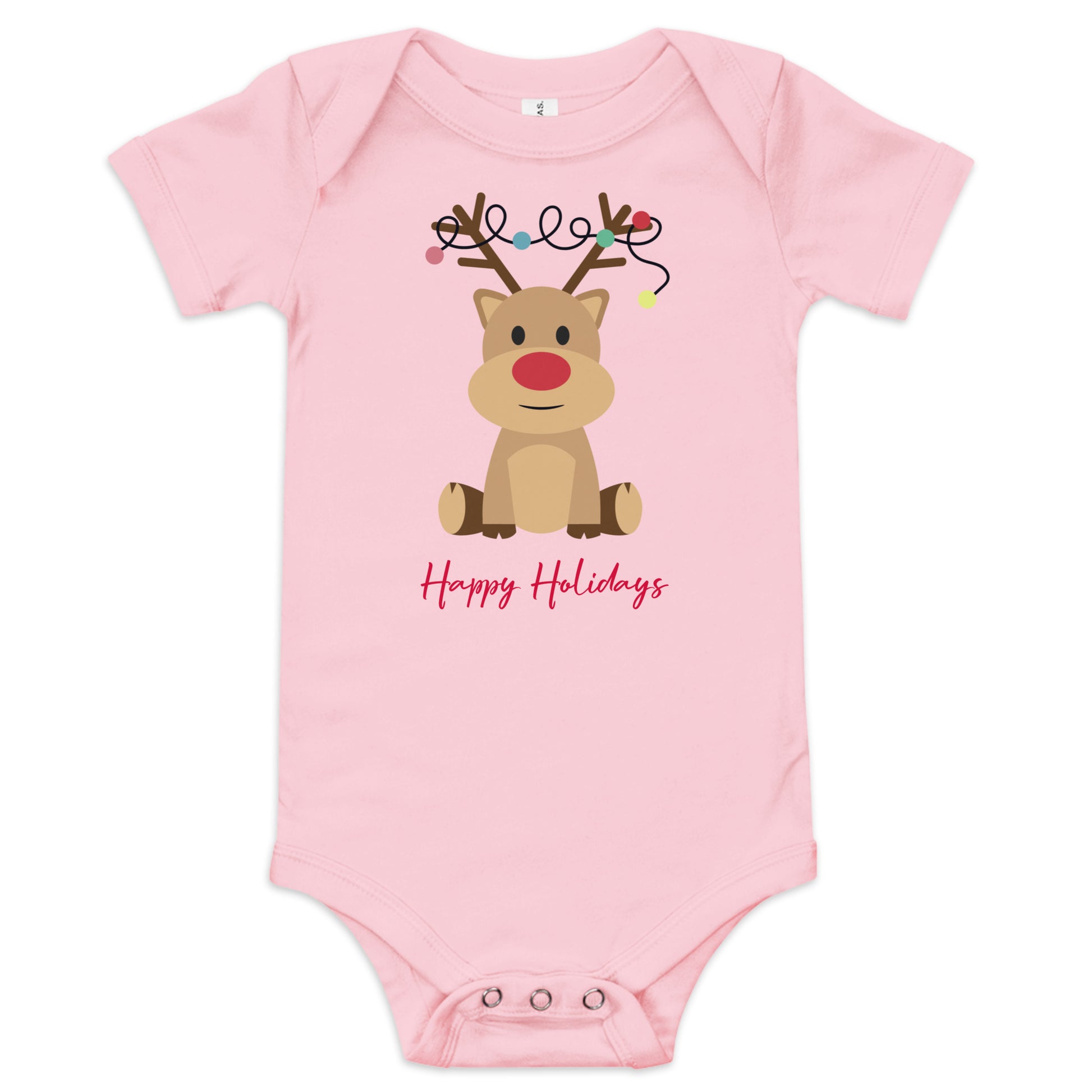 Dress your baby to the nines with this 100% cotton one piece. It has three snap leg closure for easy changing, a comfortable envelope neckline, and a beautiful print that's bound to get the baby all happy and giggling.