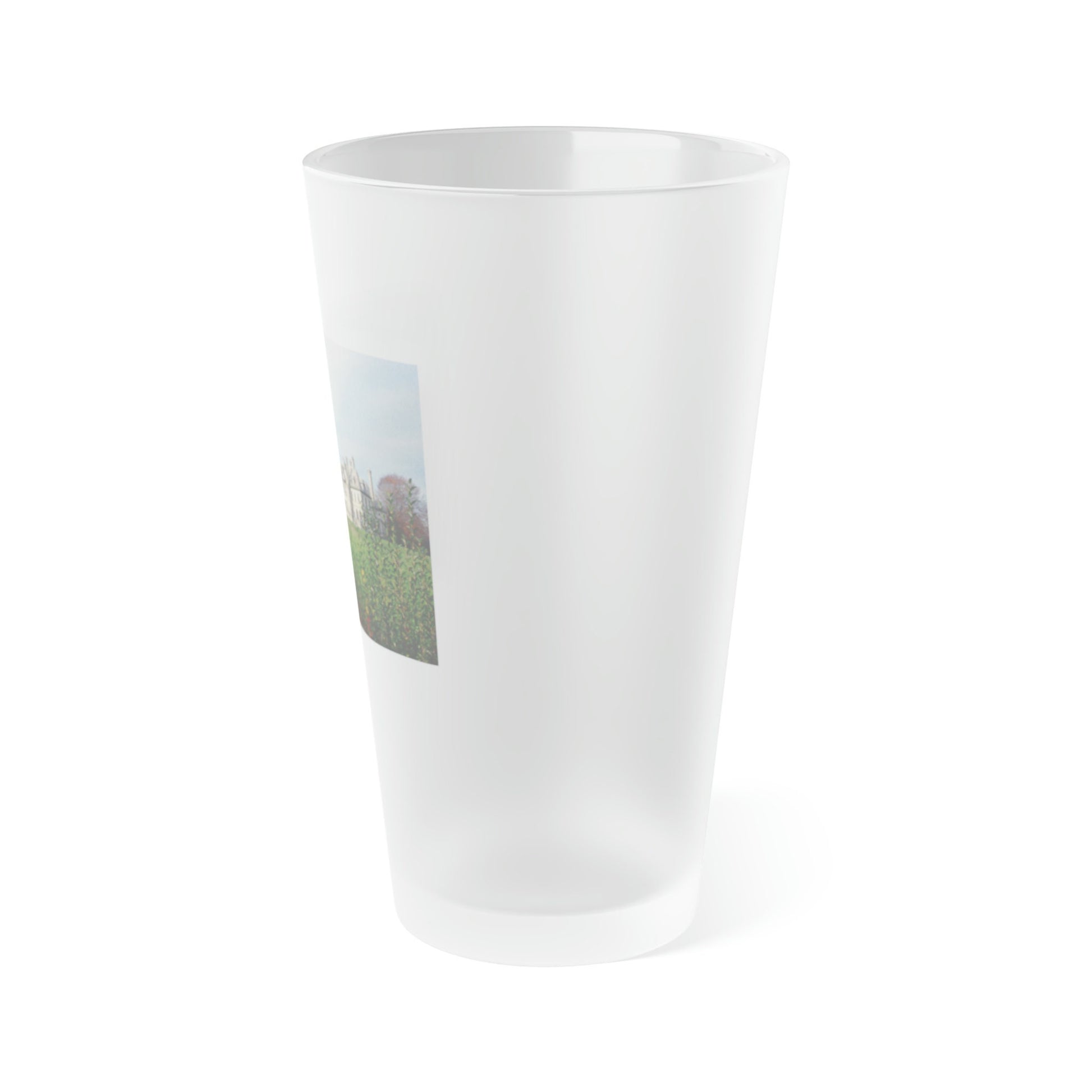 Frosted pint glass featuring Seaview Terrace in Newport, RI. These glasses come in one size: 16oz (0.47l), which is the standard pint size in the USA. A perfect gift for friends & family who are true fans of this classic Gothic Soap Opera.